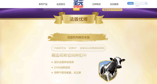 Le site internet de Synutra (appelé Shengyuan en Chine), regorge de fioritures et d’ornements. Rien n’est de trop pour rappeler au consommateur que le produit qu’il a sous les yeux est de la plus haute qualité. « Le Finistère est mondialement reconnu pour son lait doré », peut-on y lire.
